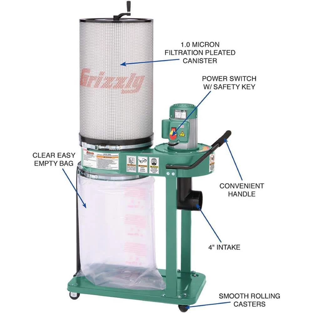 Maintaining filter efficiency is as simple as turning the crank handle on this Canister Dust Collector. Internal paddle brushes knock the fine dust cake into the lower collection bag, ensuring you always have maximum air flow. Rolling casters and push.