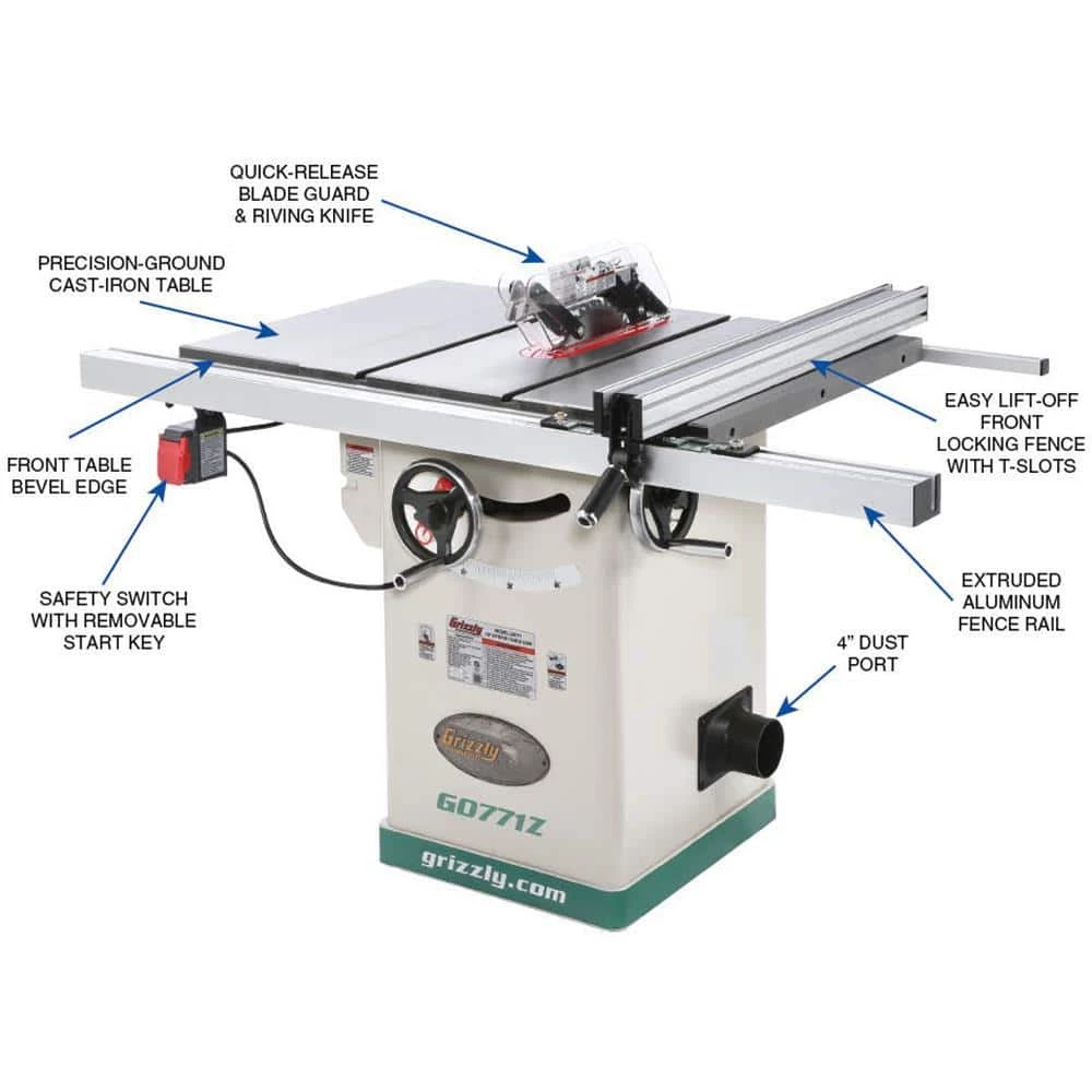 This hybrid is a selective blend of the best features of the contractor-style table saw and cabinet style table saw. Like the cabinet saw, it has an enclosed cabinet with 4 in. dust port, heavy-duty cast iron trunnions that mount to the cabinet, and plenty of power (with its 2 HP motor) to easily rip through hardwoods or cut dadoes. Like the contractor-style saw, it’s still light enough to move around (it weighs approximately 286 lbs. when fully assembled) and it’s easy on the budget. The fence on this machine is also a hybrid of some of the best features we’ve had on table saws in the last 30 plus years. It has the easy lift-off and simple adjustability of the popular T-shape Shop Fox Classic fence, the rock-solid front locking ability of the Shop Fox Original fence, and the accessory T-slots of the Shop Fox Aluma-Classic fence. To top it all off, this saw features an innovative quick-release blade guard and riving knife system that can be changed in seconds-and it’s prewired to run on an ordinary 120-Volt, 20 Amp circuit. Made in an ISO 9001 Factory.