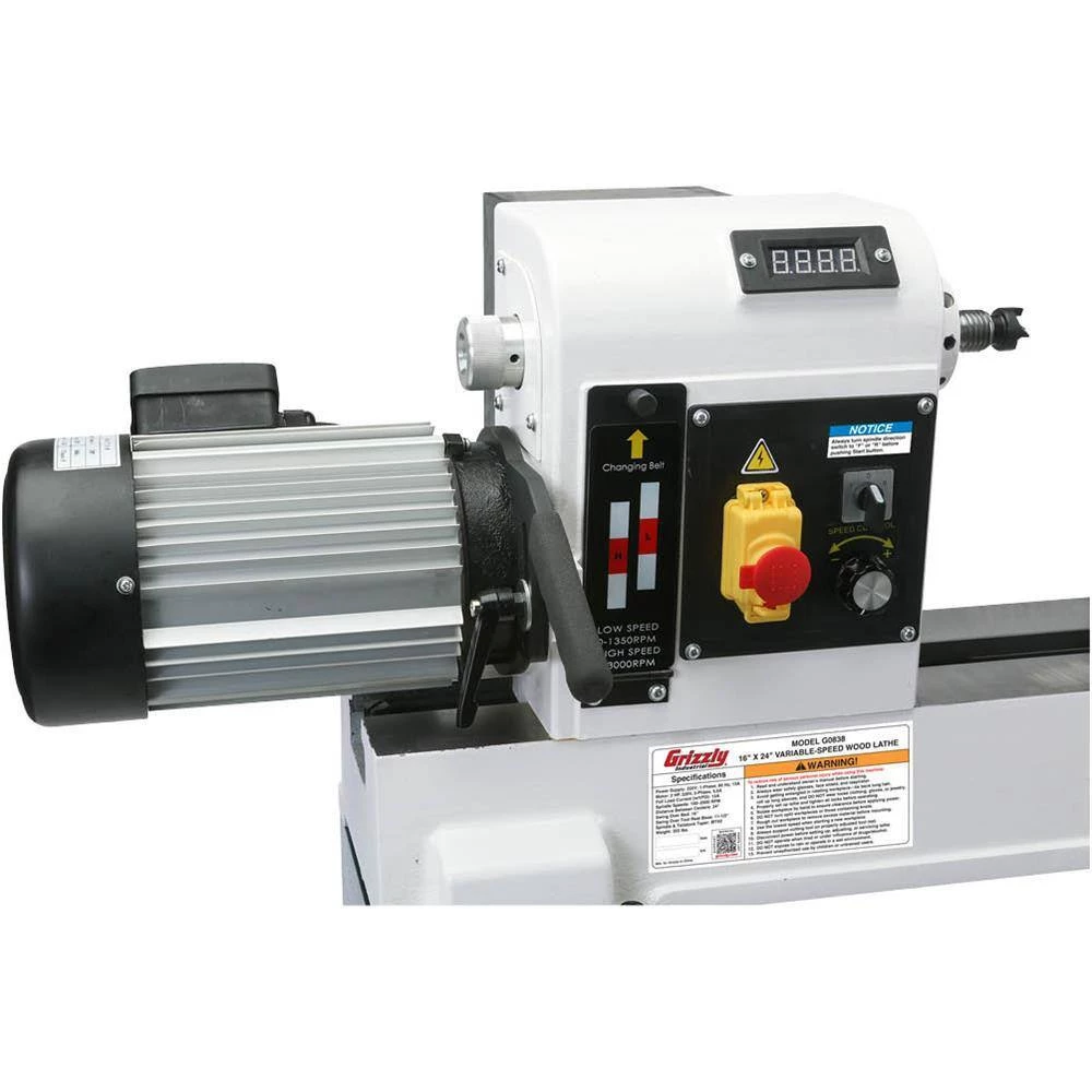 Bring home the functionality and features of a much larger lathe with this compact G0838 16 in. x 24 in. Variable-Speed Wood Lathe. Don’t let it’s small size fool you, this stout machine has plenty to offer. With a 2 HP 3-phase motor using a VFD to operate on single-phase 220-Volt power, this lathe gives you the extra torque needed for turning hard woods at really low speeds. Additionally, the headstock slides along the precision-ground cast iron bed and can be locked in place on the tailstock side for outboard turning of much larger pieces. This machine is a bowl-turner’s dream.