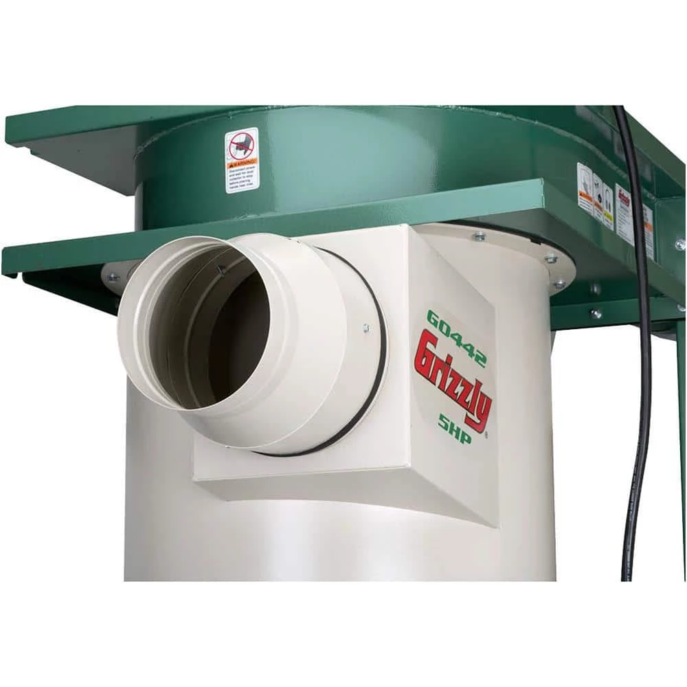 Cyclonic action separates the heavy dust particles from the fine particles and drops them into the 55 Gal. steel drum. Any remaining dust travels past the 16 in. Dia impeller and is then trapped by a cartridge filter made of spun-bond polyester that filters 99.9% of particles from 0.2 microns to 2 microns in size. Each cartridge filter is pleated to provide 226 sq. ft. of surface area for efficient air movement and a clear plastic bag collects the fine cake that shakes off the filter for consistent dust collector performance. Casters mounted to the drum also make disposal of the larger chips and dust as easy as it gets. Other features include: a vertical motor support for reduced vibration, thick walled 11-Gauge steel blower housing, 14-Gauge steel cyclone body, 360° blower rotation for easy connection to a duct system, TEFC Class “F” motor, and filter cleaning device. A rugged steel stand is included. Over 2-years in the making, these cyclone dust collectors are the best in their class – at any price.