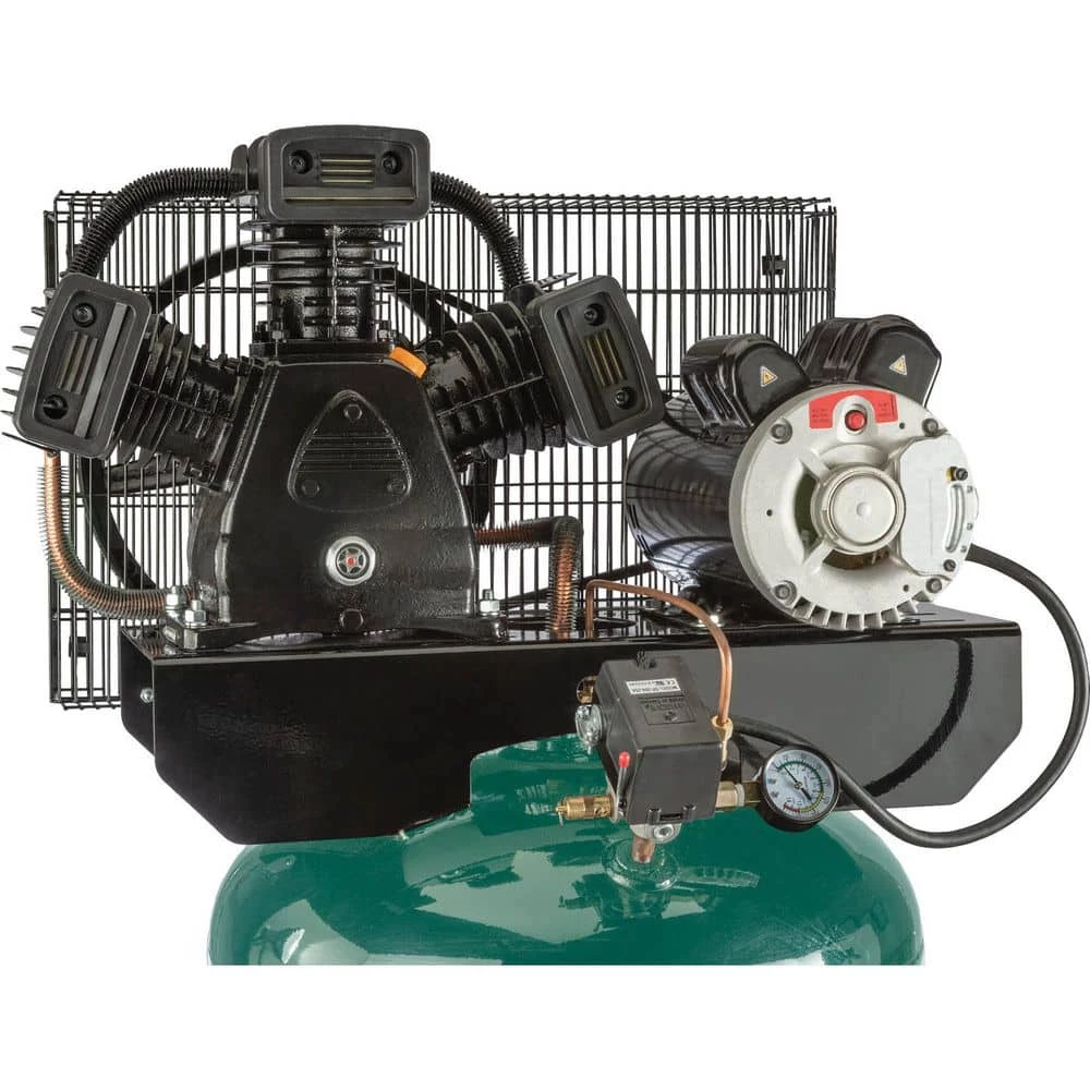 The Grizzly G0955 60 Gal. 5 HP Extreme Series Compressor operates at low RPMs for extended life and low maintenance. The 5 HP 230V motor operates with a maximum pressure of 125 psi This compressor delivers 18 CFM at 90 psi and 20 CFM at 40 PSI. Providing more complete motor overload protection than a magnetic starter that only senses current, the motor senses both temperature and current. A wired-formed belt guard provides more efficient cooling to keep the unit from overheating. The 60 Gal. vertical air tank has been ASME certified to meet safety and quality standards. The 1-stage cast-iron oil-lubricated pump operates at high pressure providing increased volume when you need it. Additional features include a tank pressure gauge, on/off switch, 1/2 in. NPT threaded fitting, easily accessible oil level sight glass, and oil drain with 4 in. extension. Like all Grizzly air compressors, the G0955 comes with a 1-year warranty which covers parts and assures the unit is free from factory defects. The Grizzly Customer Service and Technical Support Teams are U. S. based. To order parts, or other services and inquiries, contact Mega Compressor at (832) 415-6995. SPECIFICATIONS:Motor: 5 HP, 230V, single-phase, 22. 5AAirflow capacity: 18 CFM at 90 psi and 20 CFM at 40 PSIMaximum air pressure: 125 PSIOverall size: 30 in. W x 22 in. D x 68 in. HApproximate shipping weight: 345 lbs.