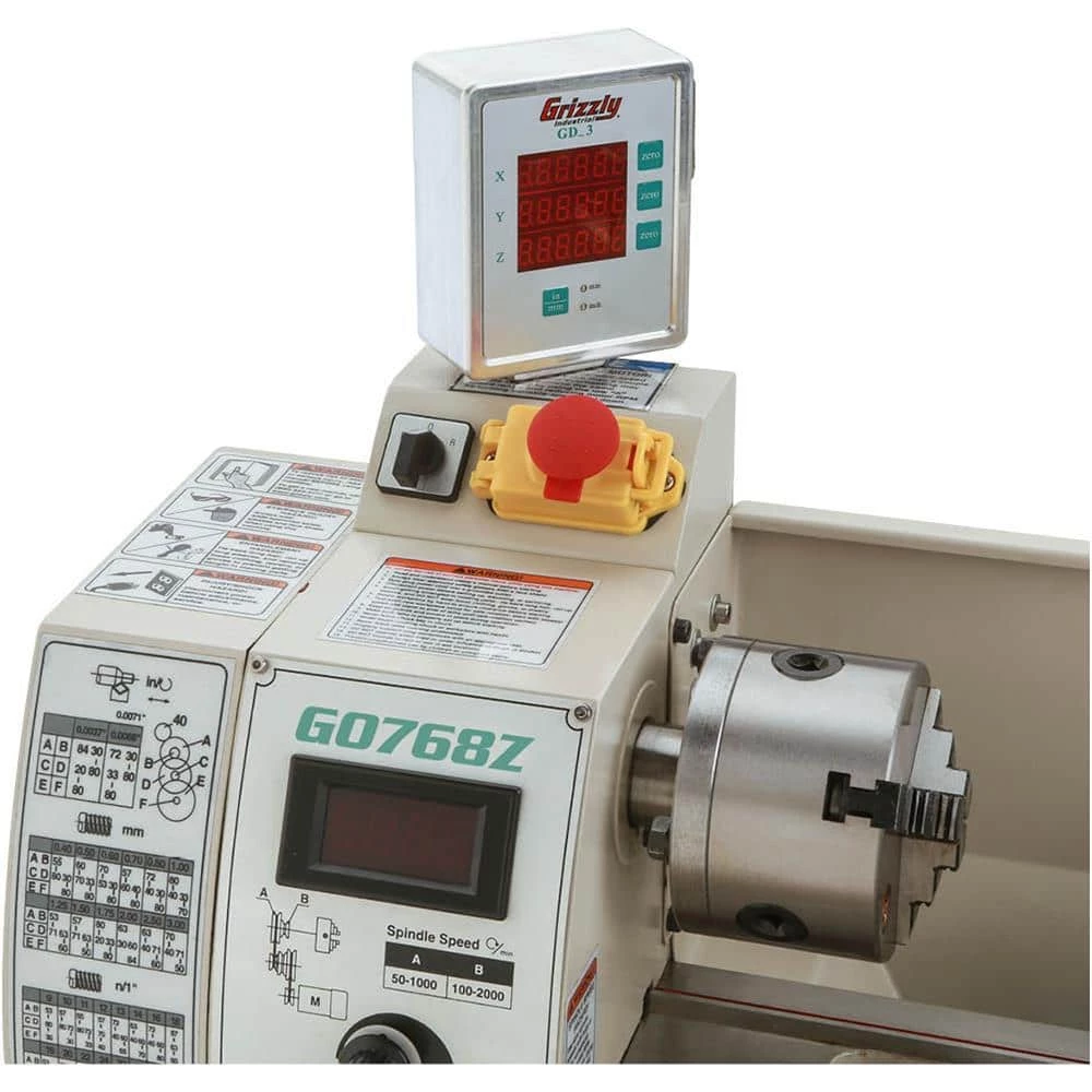 The Grizzly G0786Z 8″ x 16″ Variable-Speed Lathe is perfect for a sturdy workbench or as a stand-alone unit when mounted on the T26599 Optional Stand. It features a Fagor X/Z-Axis DRO for cross slide and carriage travel, variable-speed spindle with high/low speed ranges and digital RPM readout, convenient quick-lock tailstock, reverse feed for cutting left-hand threads and a great selection of included standard equipment. Like all Grizzly lathes, the G0768Z comes with a 1-year warranty that covers parts and assures the unit is free from factory defects. (Consumables are not covered by the warranty.) The G0768Z manual was written by our U.S. based Documentation Department is packed with useful information. The Grizzly Technical Support team is U.S. based. Parts and accessories for the lathe available online and shipped from the Grizzly parts warehouse in Springfield, MO.