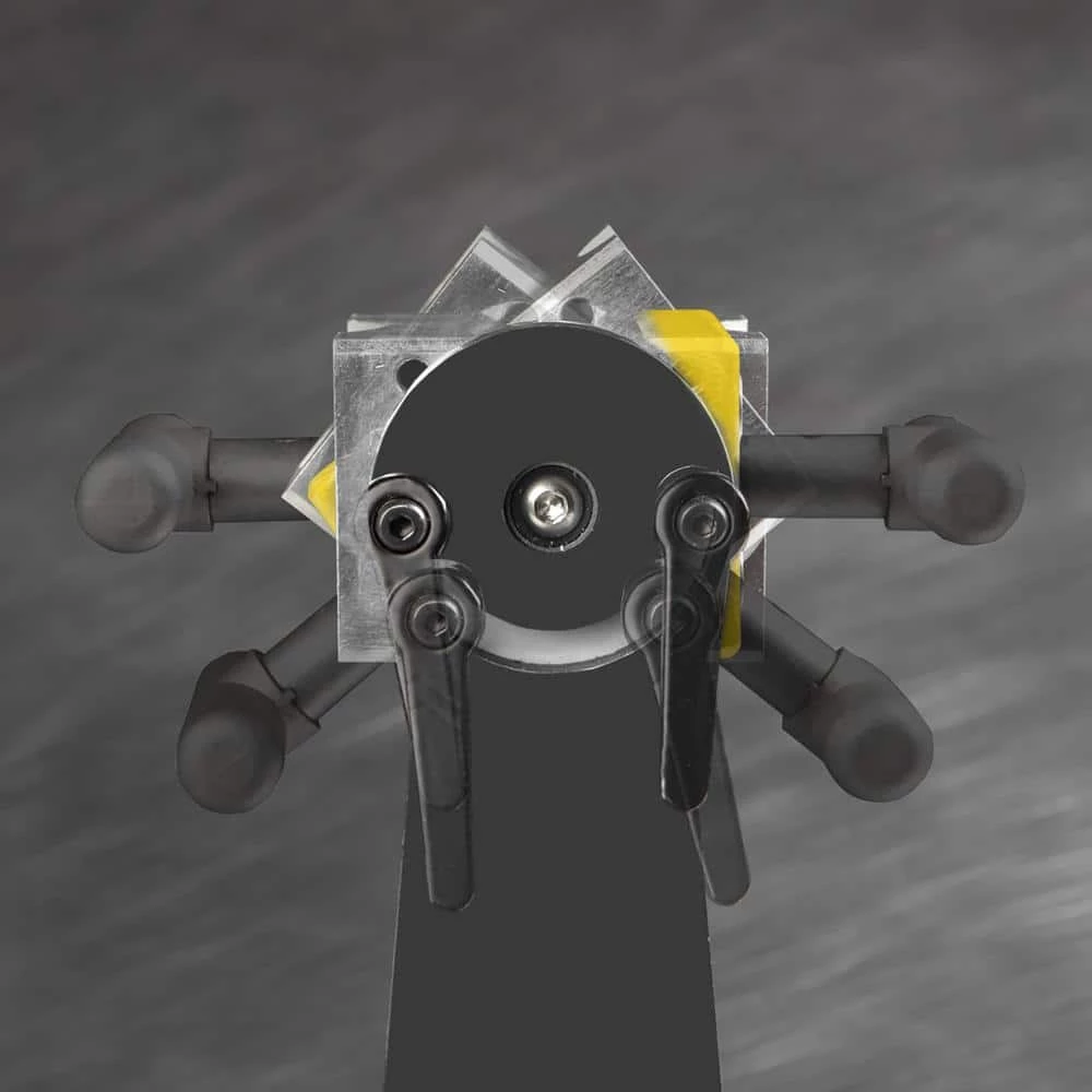 The Magswitch BoomerAngle 150 has a rotating MagSquare at each axis to provide virtually unlimited angles. This tool includes a pre-set for 90° holding. Switch On and Off 150 lbs. of magnetic hold force by rotating the black knobs.
