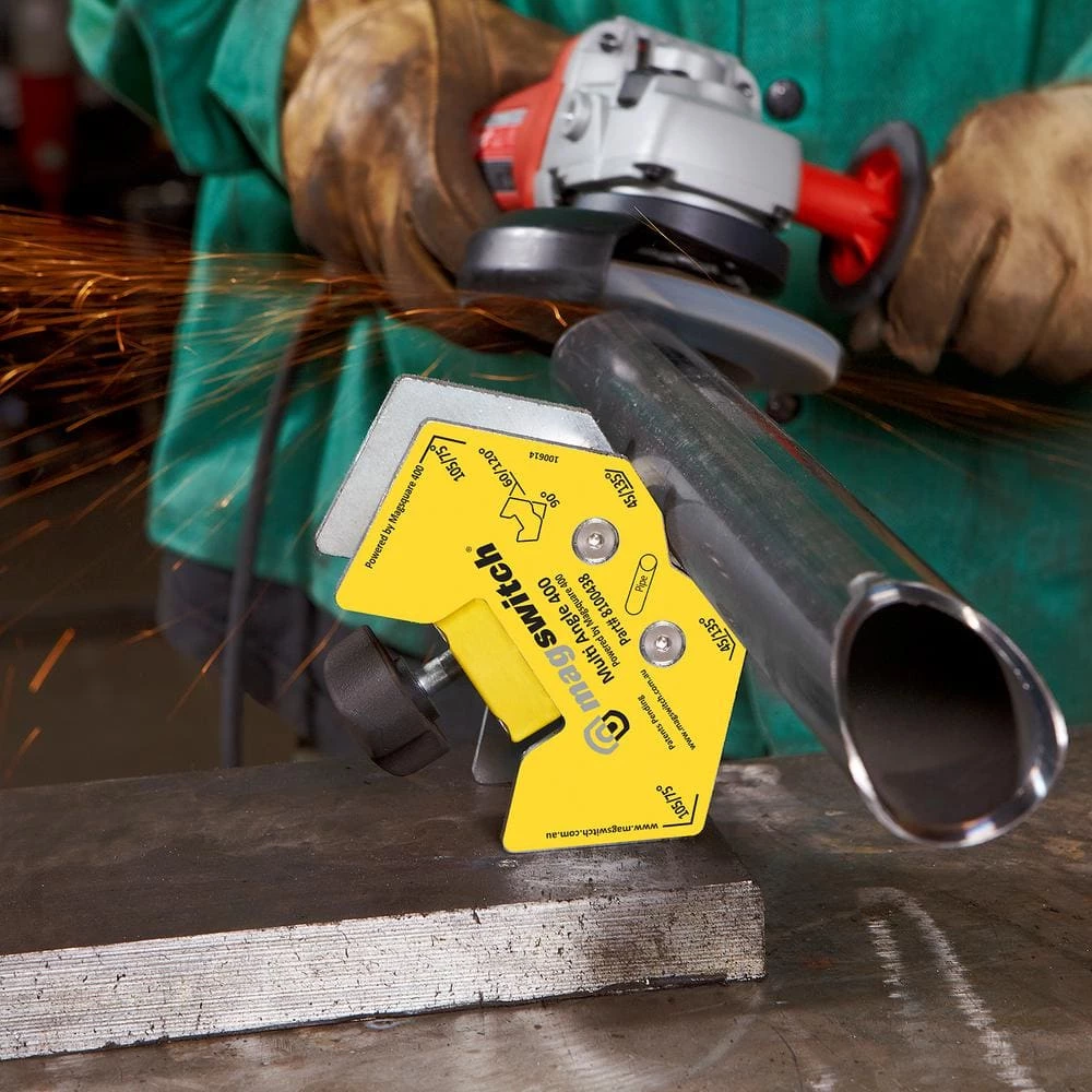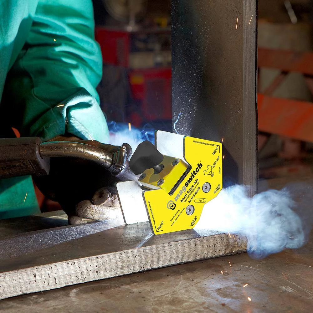 The Magswitch Mini Multi-Angle is a magnetic workholding tool that offers 45/135, 60/120, 75/105 and 90° angles. Switch On and Off 400 lbs. of magnetic holding force. This tool can hold common angles with superb strength.