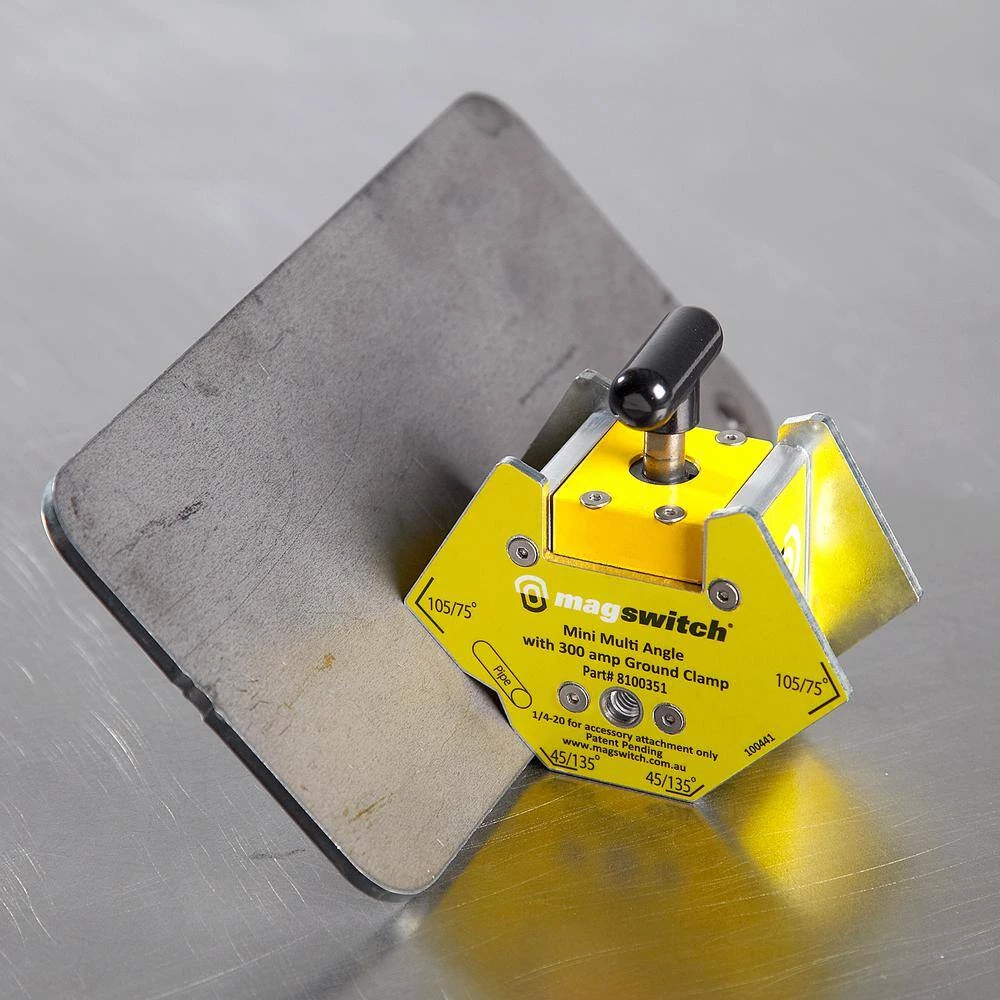 Our magnetic workholding tool is designed with multiple angles in one. Offers 45/135, 60/120, 75/105 and 90° angles. Switch On and Off 150 lbs. of magnetic holding force.